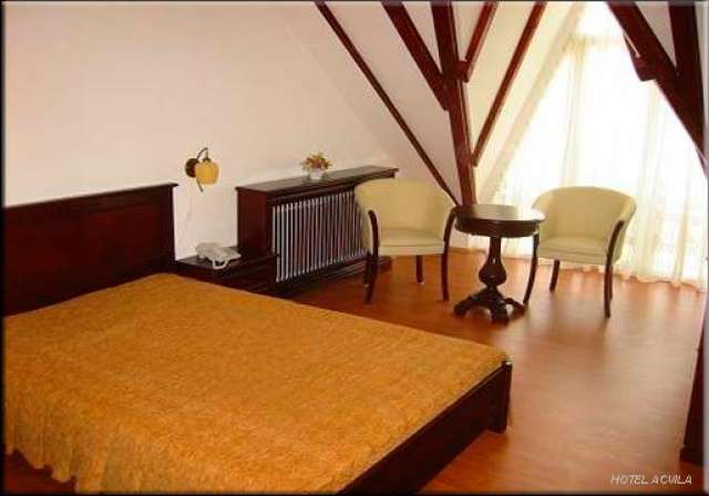 Hotelul Acvila dispune de 14 camere duble spatioase din care 7 camere sunt dotate cu pat matrimonial si 7 camere cu paturi separate (twin), 2 garsoniere cu pat matrimonial si 1 apartament cu un dormitor.