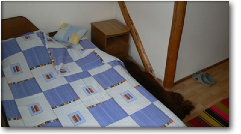 La etajul cabanei am amenajat 3 camere (10 locuri de cazare). Fiecare camera are pat dublu, fotolii, masuta, grup sanitar cu WC, dua sau cada cu hidromasaj (cu apa calda permanenta) si balcon.